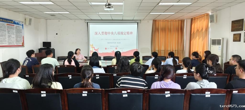 6月24日,关贵清以“锲而不舍贯彻落实中央八项规定精神,立足岗位推进工作取得新成效”为题,分别从深刻认识中央八项规定精神的重大意义、违反中央八项规定精神的典型案例剖析、违反中央八项规定精神的原因、以实际行动推进中央八项规定精神落地落实、立足本职岗位践行中央八项规定精神等方面进行了讲解,要求全体教师党员要在教书育人中改进工作作风。